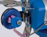 在编织长纤时,断头单丝极易聚集在绕纱轮上,妨碍正常送纱。为此可选用于短纤的较平出纱角或用于长丝的较陡出纱角。