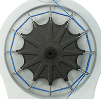 此储纱轮很轻但很坚固.用以理想搭配高动力应力传输的马达. 精确的卷取纱线确保卷取优化及防止过量卷取.