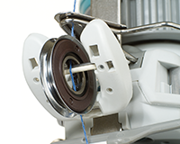 这只封闭式的,抗磨损的储纱送纱轮在处理多丝纤维纱时有防残丝积聚功能。